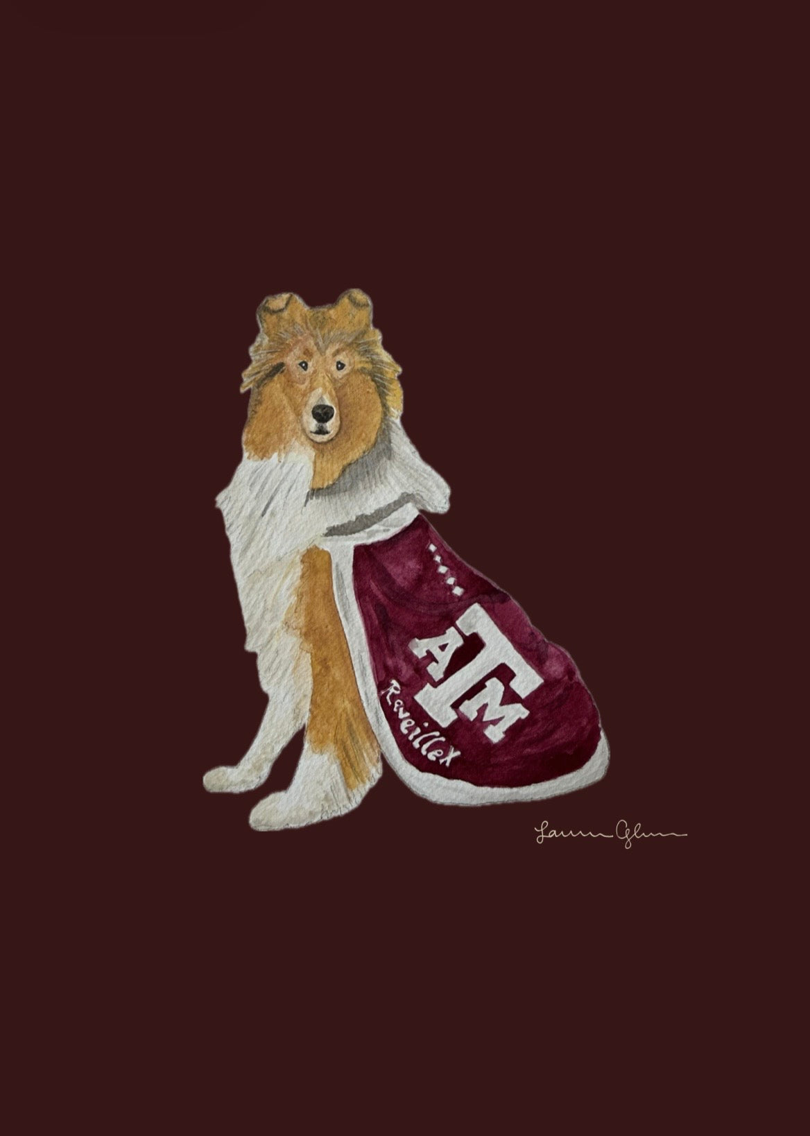 Print of an original painting honoring Lauren’s Alma Mater, Texas A&M University. Printed on linen finish heavy weight paper measuring 5”x7”.